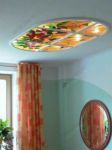 Вы можете сравнить декоративный эффект витражей фьюзинг и других техник, применительно к потолку. Ознакомьтесь с возможностями использования потолочных витражей разных форм и стилей, пользуясь следующим меню: